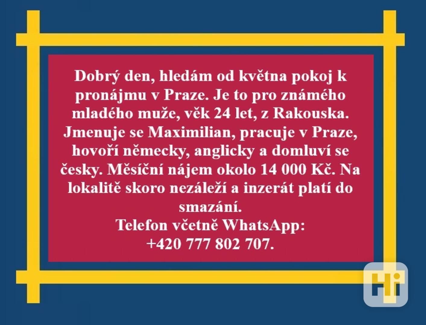 Hledám pro slušnou, ve zdravotnictví pracující dívku pokoj k dlouhodobému pronájmu. Slečna je tichá a pořádná. Nepije a nekouří, miluje čistotu, takže… Nabídka může být z Prahy, Buštěhradu nebo Kladna. Měsíční nájem dle dohody, cca 10 000 Kč. Děkuji. Telefon včetně WhatsApp: +420 735 520 256.
